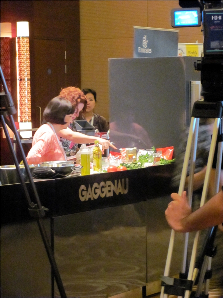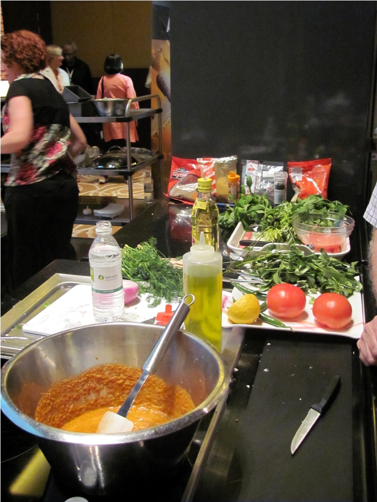 The first session I attended was a live cooking demo by Madhur Jaffrey at 1.30pm. While I got there on time, in fact, slightly earlier, there was a very long queue for her workshop. But the line soon started moving forward and I met up with lovely women I knew from Twitter and food blogs. We entered, found ourselves a comfortable spot and started clicking photos. Apparently there were some technical problems with the temporary kitchen set up in the hall, which had caused the delay. However, once the writer appeared and started working her magic, we all enjoyed a session with kababs and quips. One gripe: due to the initial delay, the session finished slightly later than planned and the delicious-looking kababs that Madhur Jaffrey had prepared were not passed around the audience as they were originally supposed to be. Alas…that lone piece of kabab in the end was claimed by a fellow food blogger, Linda, who stated it was really good.