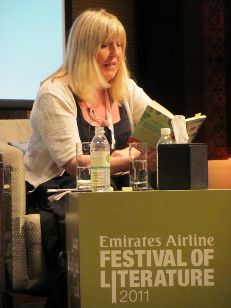 Soon though, it was time for the 3pm session with the author of Eats, Shoots and Leaves, Lynne Truss. I first read her book during my Masters degree. I’d borrowed it from the Information Commons, the lovely, large and comfortable library of the University of Sheffield. Buried amidst its many shelves, within its bright and spacey interior, I found one of the funniest books I’ve ever had the pleasure to read. About grammar and punctuation, no less! I remember reading the book for the first time on a train from London to Sheffield, and chuckling aloud at various paragraphs. Lynne Truss had a way with words, and it was a delight to hear from her; about her books, her career as a journalist and more.