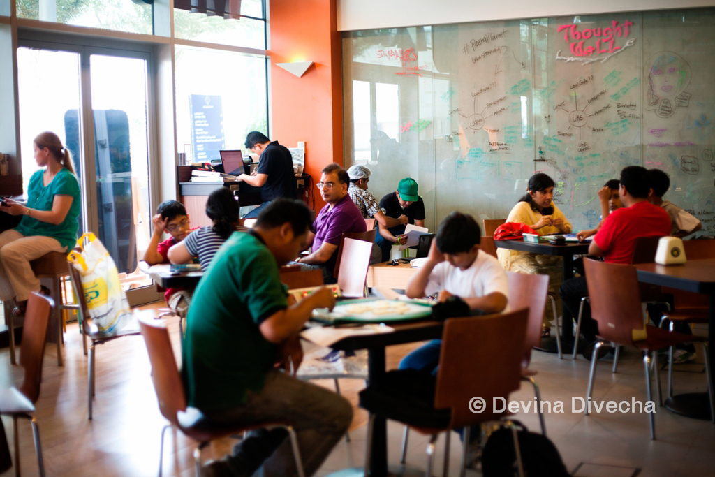 But here’s the thing: they’re all very friendly. I sat around different tables, asking questions that probably make anyone roll their eyes internally and wonder why noobs like me were wandering around… but they were friendly, answered all my questions and didn’t make me feel like a Scrabble virgin (even though I’ve been playing for about 15 years). So it’s definitely a place for people who play Scrabble casually too. I had this boy wonder (I should’ve got his name but didn’t) who kept peppering our play with random comments: “Plastids? That’s a good word.” or, “Who played that word? It’s good”.